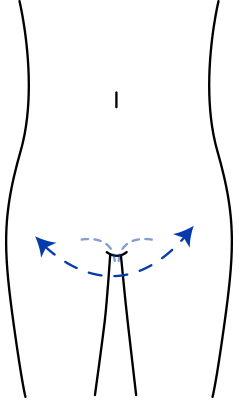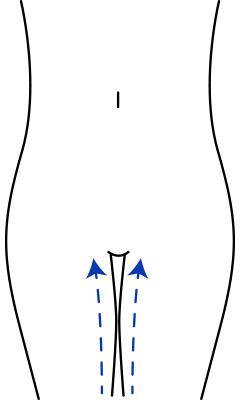恥骨からおへそ・わき腹にむかってしたから上に 太もものつけ根をグルッと内から外に 太ももの内側を下から上にマッサージしてください